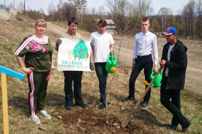Перед проведением посадочных работ лесники провели беседу с ребятами о значении деревьев, лесного массива, о роли Тумнинского лесничества на территории Хабаровского края и о том, как правильно посадить дерево.